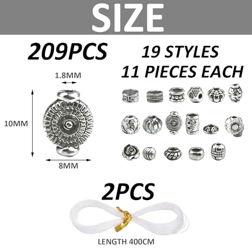 209 perline da bracciale, con 2 rotoli di corda di perline, distanziatore per braccialetti, accessori per gioielli, gioielli vintage, adatti per la realizzazione di gioielli, collane fai da te,
