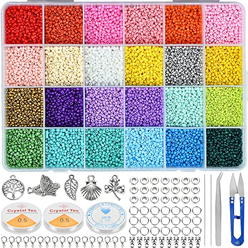 Perline per Braccialetti, 24000 Pezzi 24 Colori Perline di Vetro Perline Colorate 2mm di gioielli e 242 pezzi di accessori perle per Fai da Te Mini Perle di Braccialetti, Collane, Bigiotteria (2mm)