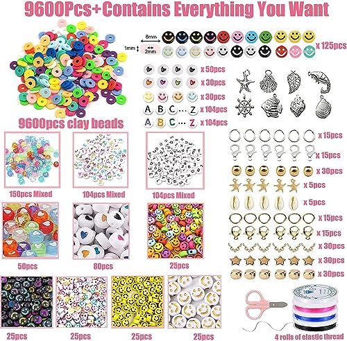 Accessori di aggiornamento ed espansione: il nostro set di perline in argilla include 48 colori popolari, 200 perline di argilla per colore, 48 perline colorate e accessori di espansione in totale 9600 pezzi per soddisfare tutte le tue esigenze fai da te. Gli accessori di espansione includono (200 perline trasparenti colorate, 208 perline miste dell'alfabeto, 110 perline per il viso e perline a cuore, 125 perline per il viso e vari altri accessori, 1 paio di forbici di sicurezza e 4 rotoli di corda elastica da 0,8 mm).