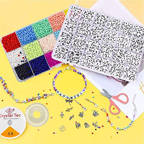 Perline per Braccialetti, Perline per Bigiotteria Fai da Te, ZesNice Perline da Infilare, 7500 Pezzi Mini Perle Vetro e 1200 Perline di Lettera e Perline di Cuore