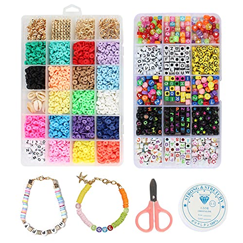 ✨ 【Kit di fabbricazione di gioielli】 Ci sono un totale di 4618 pezzi con le perle spaziose in 18 colori, ogni 200 pezzi. 8 pezzi di conchiglia Cauri, 8 ciondoli di stella marina, 40 perline cubiche, 40 perline a cinque rami, 50 pinze per aragosta, 1 filo elastico, 1 scalpello, 50 pezzi di cerchi aperti, 550 pezzi di perline lettere, 100 pezzi di smiley giallo e 50 pezzi Perle Stella, 500 pezzi di perline numeri e 50 pezzi di perle del cuore.