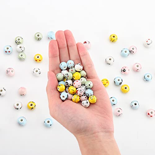DAHI Perline di ceramica da infilare, 100 pezzi, sorridenti, 12 mm, perline rotonde, per braccialetti fai da te, collane, orecchini, accessori