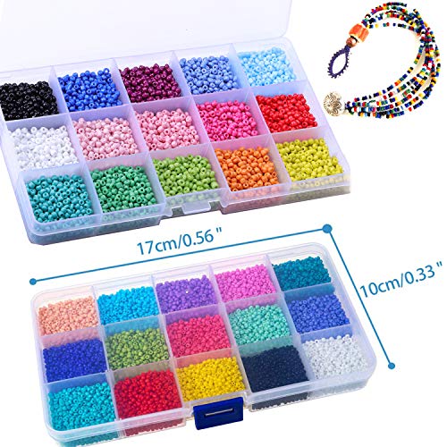Perline Colorate, 15 Colori Perline di Vetro 3mm Mini Glass Beads Set Perline Distanziatori per Fare Braccialetti Collane Gioielli Bigiotteria DIY Regalo(Circa 7500 Pezzi)