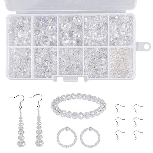 Perline Cristallo Sfaccettato 900+ Pezzi Creazione di Gioielli Fai da Te Perline di Vetro Kit con Filo di Trasparente Elastico per Creazione di Gioielli (2, 4, 6, 8, 10mm)