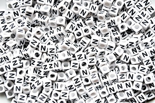 Perline cubiche con lettere dell'alfabeto, 100 pezzi da 6 mm, in acrilico, colore bianco, lettere singole e miste, N