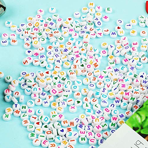 ❤ 【Specifiche della confezione】: Riceverai una scatola di perline con 26 lettere e un motivo a forma di cuore.4 × 7 mm, 1850 pezzi. Questo kit include anche gli accessori necessari, come forbici, piccoli anelli e fibbie per aragosta.
