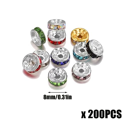 Perline Distanziali con Strass di Cristallo 200 Pezzi Distanziali strass in Metallo Distanziatori Piatto Perle Rondelle Beads Cristallo di Strass perline a crimpare per Bracciali Creazione di Gioielli