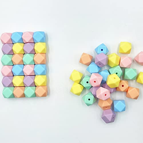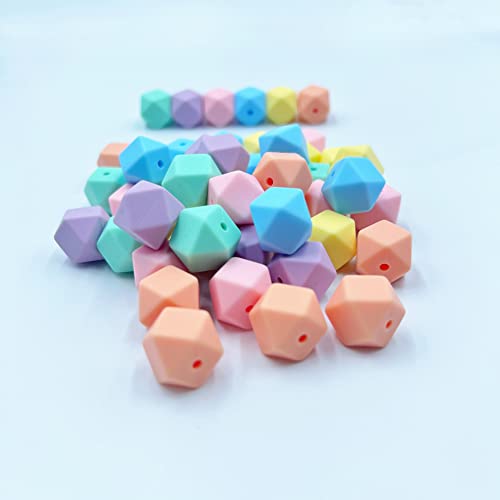 Perline Esagonali Sciolte Del Silicone 14mm 50pc Perline Poligonali Di Colore Della Caramella Per Il Braccialetto Della Collana di DIY