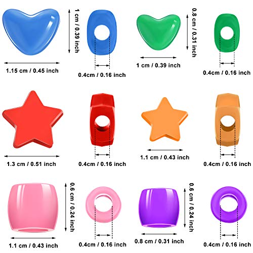 Cosa ottieni: riceverai 600 pezzi di perline di plastica colorate, inclusi 3 stili: cuore, stella e forma rotonda, ogni stile ha due dimensioni (metà nel foro grande e metà nel foro piccolo), queste perline colorate sono accuratamente imballate in un scatola per tenere in ordine le tue perline e non si romperà, inoltre, se le perline si esauriscono, la scatola continuerà a fungere da contenitore