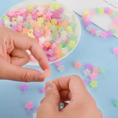 500 perline da 12 mm a forma di stella, si illuminano al buio, perline bianche a forma di stella