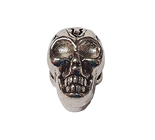 20 perline a forma di teschio, 12 mm, in metallo, su entrambi i lati, argento, 5 mm, foro grande per fai da te, collane, bracciali, gioielli fai da te
