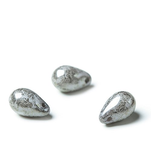 Perline a goccia lisce in vetro ceco 9 x 6 mm, 20 pezzi, colore grigio opaco