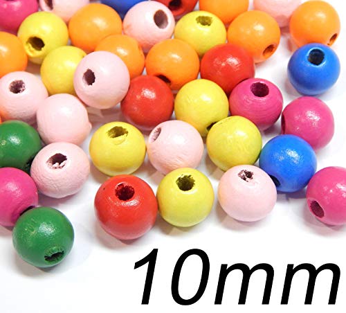 Ideale per accessori fai da te e gioielli. 200 perline di legno da 10 mm, colorate, per fai da te, realizzate in legno naturale di alta qualità, aspetto semplice, buona sensazione al tatto e durevoli
