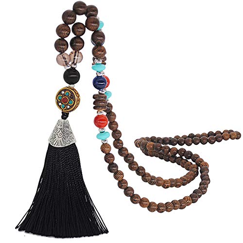 Perline di legno Girocollo con nappa maglione catena dell'annata Collana Etnica collane per Unisex