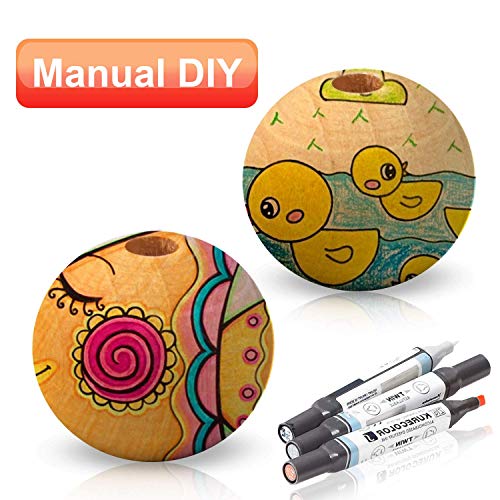 Perline distanziatrici non finite: la superficie delle perline di legno è ben lucida e si può scarabocchiare o colorare su di esso. Pronta per essere dipinta, colorata, impreziosita o jeweled. Consente di creare perline di legno personalizzate per decorazioni o artigianato.