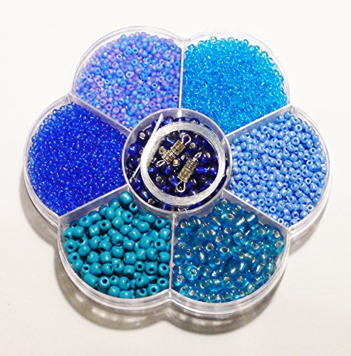 Mix di Perline per fai da te, con filo Nylon e chiusura - ca. 120 g - (1 x 1 set), Plastica, blu, diff.