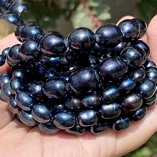 Perline di perle d'acqua dolce nere naturali a forma di riso, 4-10 mm, sfuse, per la creazione di gioielli, collane, bracciali fai da te