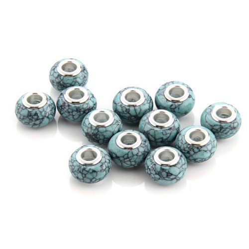 12 PERLINE PERLE IN TURCHESE BLU CHARMS STILE 14x8mm