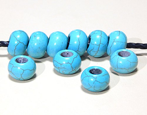 Molto soddisfacente! 10 pezzi. Perle turchesi blu turchese e perline rotonde EUROPEAN per creare il vostro braccialetto o la vostra collana personale. Forma: anello Dimensioni: circa 14 x 8 mm, foro filo: circa 6 mm. Prodotto nuovo