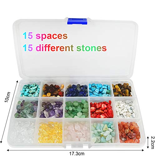 ❤️ Hai: 1 scatola ci sono 10 tipi / 15 tipi / 18 tipi di diverse perle di frammenti di pietre preziose naturali, ogni scatola 200 g / 270 g / 320 g. Un contenitore di plastica è incluso in modo da poter riporre i tuoi gioielli facilmente e in modo ordinato.