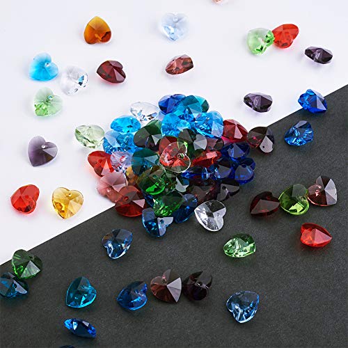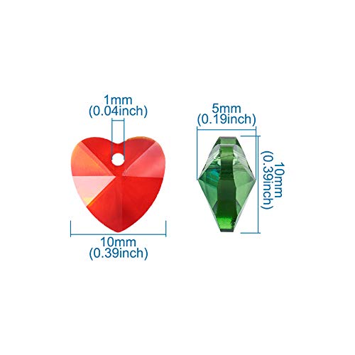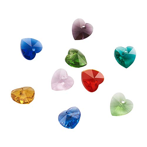 200 perline sfaccettate di vetro a forma di cuore, 10 x 10 mm, colori misti, in vetro trasparente, per collane, bracciali, gioielli