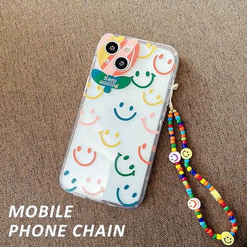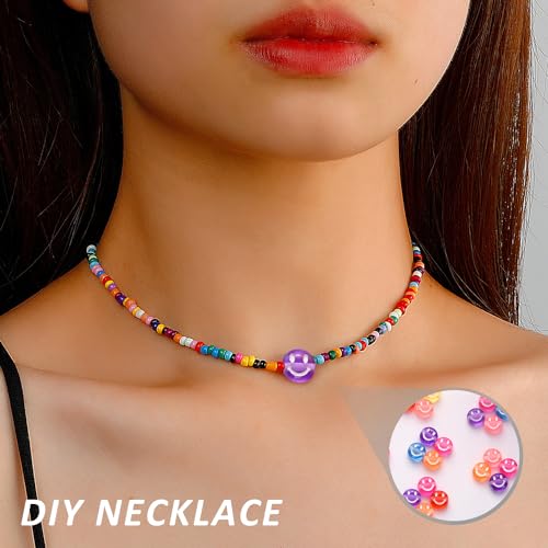300 perline Smiley con filo di perle da 15 m e sacchetto con coulisse, perline colorate Smiley per bracciali, collane, portachiavi, ecc.