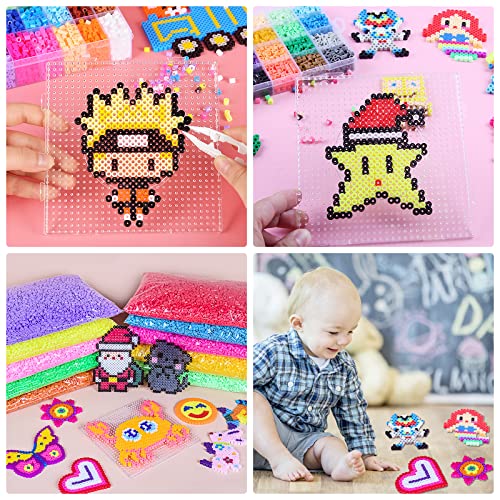 Set di perline da stiro: riceverete 2000 piastre per perline da stiro, 10 fili e 3 modelli fai da te per creare molti motivi colorati.