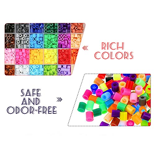 Set di Perline da Stirare da 5 mm con Piastra, 24 Colori, Grandi Perline da Stirare con Piastre e Accessori per Fai da te per Bambini, Sottobicchieri, Spille, Portachiavi, 2800 Perline