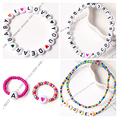 【Facile da usare】 Il kit di perline per bracciale è facile da usare. I colori intensi, le perline con lettere a doppia faccia e le perline d'amore funzionano bene insieme per creare diversi stili di artigianato.