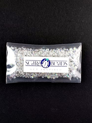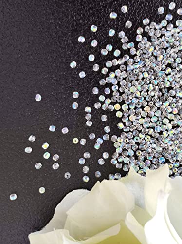 600 perline di vetro ceco sfaccettate, lucidate a fuoco, rotonde, 3 mm, Crystal AB