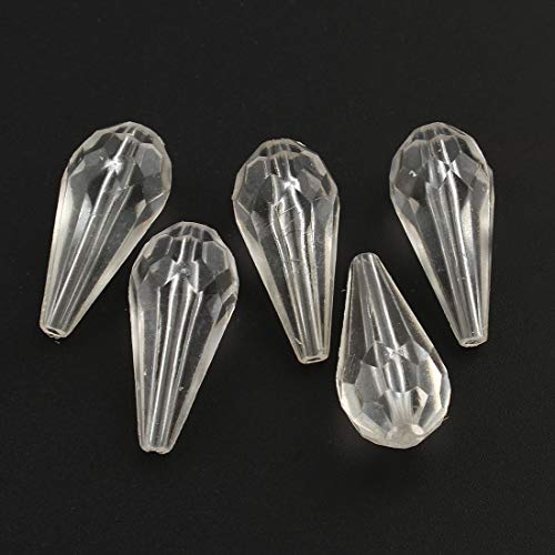 150 perline acriliche a goccia, incolore/trasparenti, sfaccettate.