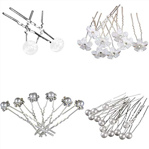 Pacchetto: Ci sono quattro tipi di forcine per capelli (6 perle di diamante, perle, strass, fiori di cristallo), ogni tipo ha 10 forcine. Per soddisfare le tue esigenze quotidiane per lungo tempo.