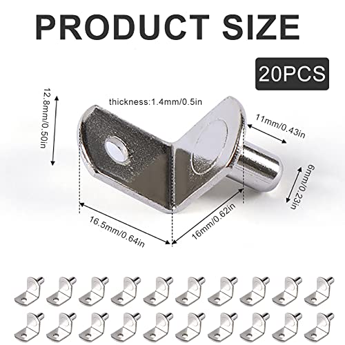 Perni per Mensole Supporto 20 pezzi 6mm Staffe per Mensole Pesanti,Perno di supporto in metallo a forma di L staffe per mensole per armadio da cucina, libreria, armadio, armadio, armadio (argentato)