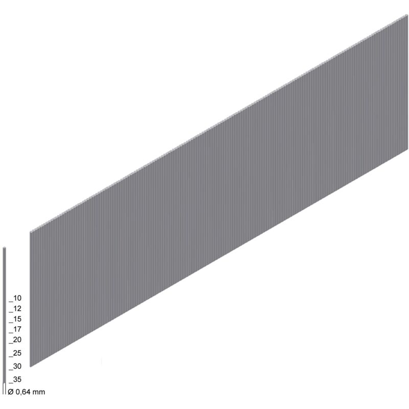 Perni Prebena tipo AL35CLS Lunghezza del perno 35 mm Dimensione del filo Ø 0,64 mm Design acciaio bronzato Pezzi/scatola 10.000 Peso per scatola 0.4 kg Unità di imballaggio 1 x 10.000