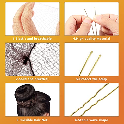 Varie occasioni applicabili: queste reti invisibili per capelli e forcine a forma di U sono solitamente applicate per fare panini per capelli, garantendo la pulizia dei capelli, lasciano che i capelli rimangano saldamente in posizione, adatti per truccatori, cuochi, ballerine, infermiere, assistenti di volo, personale dell'hotel e molto altro ancora