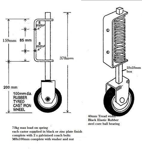 Perry Hinges - Ruote a molla per cancello, 368 mm, n. 940, colore: Nero
