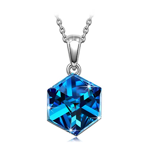 Alex Perry Regalo della Mamma Regali Natale Donna Collana 925 Sterline Argento Cristalli di Blu Cubo Gioielli per compleanno Anniversario Ragazza Lei