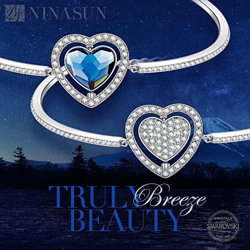 Il punto forte di questo braccialetto è il cristallo Swarovski a forma di cuore blu è reversibile, il lato anteriore è formato con il cristallo principale, mentre il lato posteriore è di piccoli cristalli pavé, si può fare un aspetto splendido se lo si indossa sul lato anteriore, o se vuoi guardare elegante e squisita, ti consigliamo di girare il cristallo, otterrai un altro aspetto scintillante! Questo braccialetto esprime la bellezza dell'utilizzatore dentro e fuori!