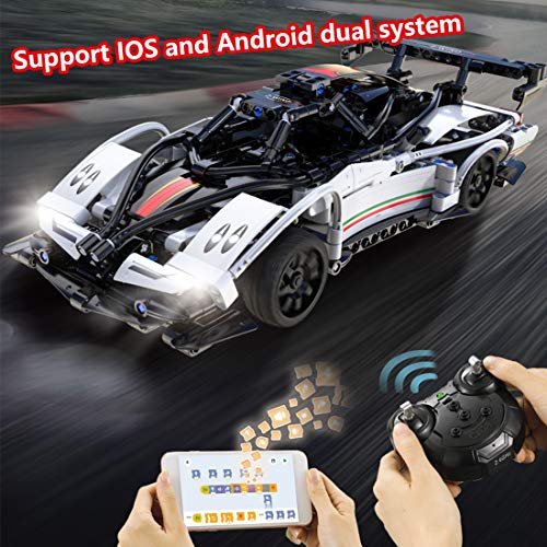 The perseids Telecomando Sports Car Building Blocks Simulazione assemblaggio Fai-da-Te Fantastico Super Sports Car per Bambini Toy Racing Model (Nero)