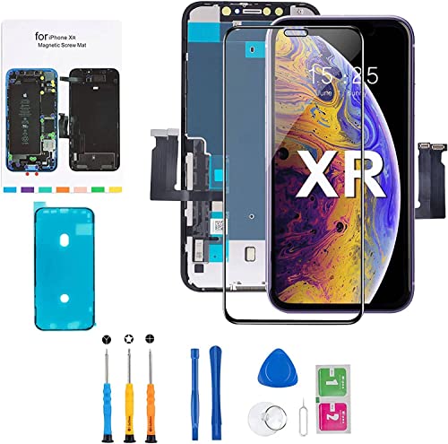 PERSEVERANCE Schermo per iPhone XR Full HD Schermo LCD Nero Touch Digitizer Assembly con Kit Riparazione, Protezione dello Schermo, Modello A1984, A2105, A2106, A2108(6,1 Pollici)