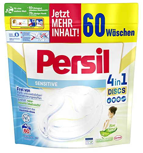 Persil Sensitive 4 in 1 DISCS detersivo per bucato (60 lavaggi), detergente per persone allergiche e bambini, rimuove le macchie ostinate, 92% di ingredienti biodegradabili