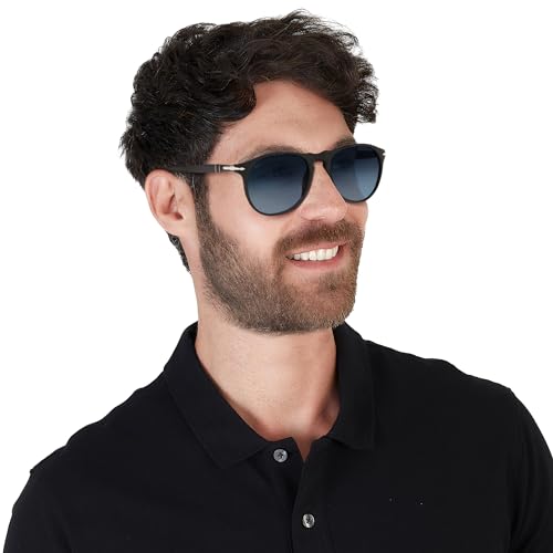 Persol 0PO9649S Occhiali, Black/Blue Shaded, 55 Uomo
