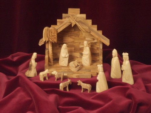 Personaggi del presepe Stile Semplice & Puro. Set da 11 Pezzi. Altezza delle Figure erette Circa 10 cm. I Personaggi Sono in Legno d'ulivo ed intagliati a Mano a Betlemme.