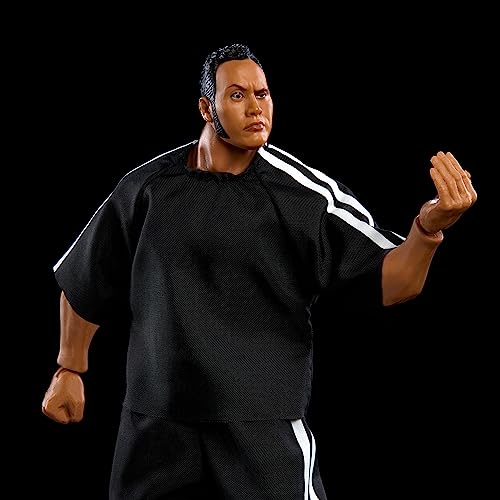 WWE - Personaggio The Rock Ultimate Edition Legends, action figure da collezione con accessori, teste e mani intercambiabili inclusi, giocattolo per bambini, 8+ anni, HLN21
