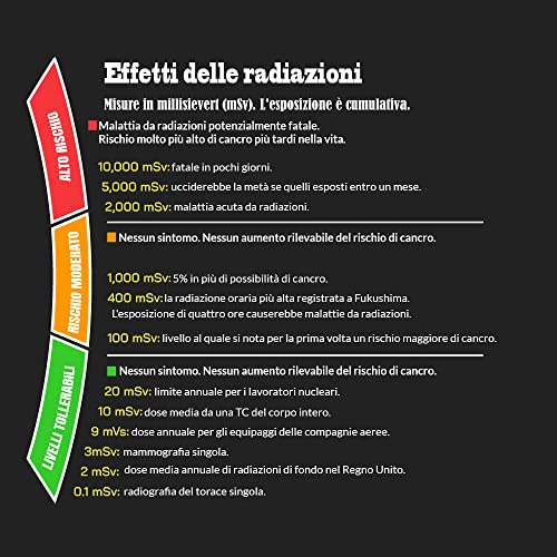 Non sono necessarie batterie o calibrazione. Resistente a una bomba EMP (impulso elettromagnetico), perfetto misuratore di radiazioni radioattive