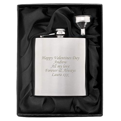 Personalised 6oz Hip Flask with Funnel in Presentation Box. Ideal Birthday / Wedding Gift. by Gift Cookie
