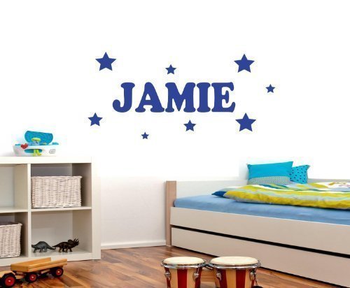 Kids Personalised Name & Stars Bedroom Wall Art Vinyl Decal Sticker 17 Colours Available ***PLEASE MESSAGE US WITH NAME *** (Blue, 20cm x 60cm) by WALL ART DESIRE