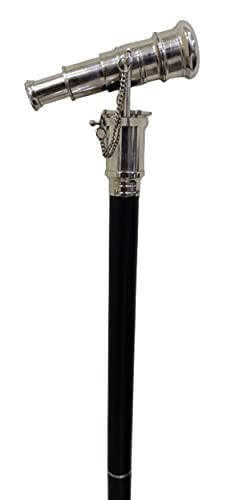 Personalized Wood Cane-Brass Telescope Walking Stick- Hidden Spy Handle Black