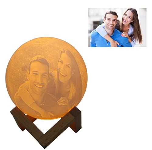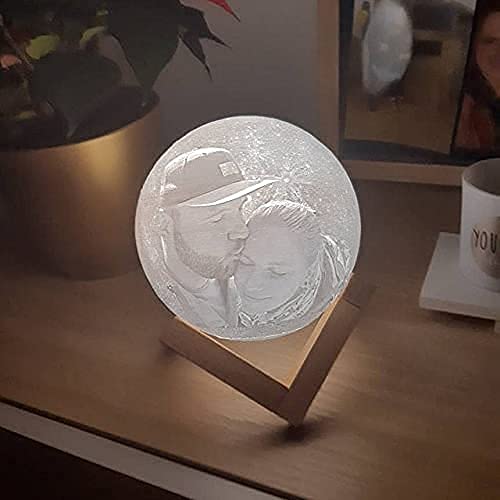 3D Moon Lamp Personalized with Picture Customized with Photo on The Moon Light, 3D Printing Moon lamp with Picture Globe Touch Change 3 Colors Gift for her Birthday Anniversary Christmas (8 Cm)