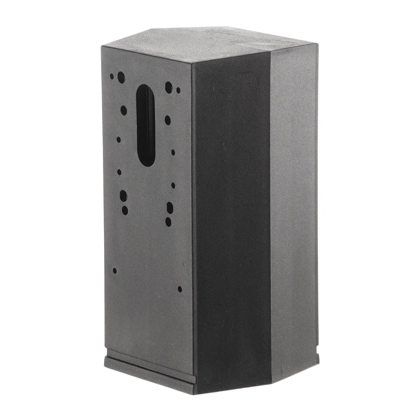 Accessorio per montaggio bracci su palo, realizzato in policarbonato nero, munito di accessorio per copertura fori nel caso di utilizzo per un solo braccio. Made in Italy